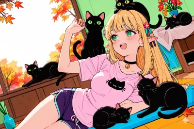 (Dynamic Angle),(Dutch angle),upper body,((Blue-black puppy on head)),(Holding a magic fountain pen in one hand),(Glowing magic light effect),(large fountain),(Magical light painting of a fountain),Rose flower garden, outdoors,black dress,black gloves,wide ruffle sleeves, rose flowers, ,strong wind,(black hair,red inner hair:1.2),rose flower,blush,smug face,blush,smile,great joy,:d,Fluttering rose petals, Magic Circle halo,Rose Brooch,Fluttering petals,Frills,(Perfect Face), (masterpiece), (best quality), (extremely detailed), (anime), Rose hair ornament,((golden decoration)),1 woman,Devil, devils horns,solo,1 woman,a pretty woman, (longhair),blue eyes, beautiful breasts,fantasy ,From the side