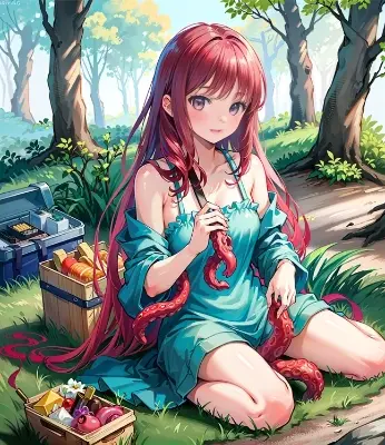(realistic, photo-realistic:1.37), (masterpiece), (best quality:1.4), (ultra high res:1.2),(RAW photo:1.2), (sharp focus:1.3), (face focus:1.2),(Fantasy World Forest:1.3),Hologram Forest,Dream World,Picnics,(bear:1.3)