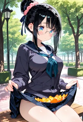 Japanese style school uniform, navy ribbon,(navy cardigan),light atmosphere,sunny day,park,turning,((twirling skirt)),standing
