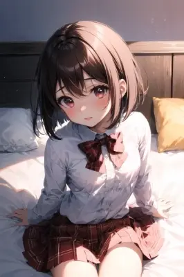 very cute and beautiful girl, round face, slanted maroon eyes, long eyelashes, pinky lip, short brown bob hair, tiny breasts, solo,