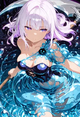masterpiece, best quality,ultra high quality,solo ,ultra detailed eyes,extremely detailed, ultra-detailed, anime, girl,female ninja,small breasts,cleavage,bob cut hairstyle,pastel color,thighs,pink hair,blue eyes,on one knee,ninja pose,water splashing,