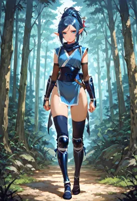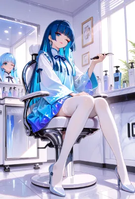 古い城のバルコニーで、青い髪のエルフ姫が満月を背に優雅に座る。彼女のドレスは夜空のように青からピンクへグラデーションし、こうもりが舞う中、秘密の恋人を待つ。過去の呪いが解ける夜、彼女の瞳には冒険の予感が宿る。あなたは彼女の物語に引き込まれ、どんな結末を想像するだろうか?