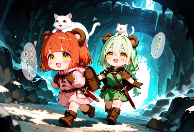 (best quarity:1.5, ultra high resolution, 8K, masterpiece), (shiny skin, extremely detailed, perfect anatomy, very aesthetic), (comic, speech bubble, frame, focus line, comic expression, sound effect), (chibi:1.3), (2+ girls, multiple girl:1.4), large breast, large eyes:1.2, (skyblue hair, puffy single bun, cow kigurumi, choker with cowbell), (oversized beef on rice in bowl, eating, holding spoon in hand, red ginger on beef, miso soup), (exciting smile, yummy, +++, blush, japanese restaurant, table on tatami, japanese cushion), dutch angle, (super fine illustration, photorealistic, depth of field:0.4), <lora:hairdetailer:0.8>
