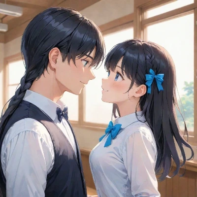 暖かな陽光が差し込む部屋で、黒髪の少女は目を閉じて手を合わせる。赤い実のような髪飾りが揺れ、頰を優しく染める。彼女は今日の幸せに感謝し、明日への小さな願いを心に込めている。もしかすると、遠くの友への想いか、家族の健康を祈るのかもしれない。この穏やかな瞬間が、彼女の日常を優しく彩る冒険の始まりのように感じられる。あなたは何を想像するだろうか?