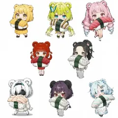 「いらっしゃっせ~♪ どれも新鮮なものが揃ってるよ~🍣」 「おしながき」 ※投稿順とは関係ございません😇 1. 2Bフブキちゃん、フグ寿司 2. クーちゃん、ガミダイ(銀色)寿司 3. アゲハちゃん、チョウチョウウオ寿司 4. ナルカミちゃん、カミナリイカ寿司 5. モモチちゃん、サクラマス寿司 6. ルベちゃん、マグロ(赤身)寿司 7. ダークネスちゃん、パンダイルカ寿司 8. プーちゃん、玉子焼き寿司 9. 「揚げ物」 謎肉の唐揚げの盛り合わせ 10. 「焼き物」 謎肉の串焼きの盛り合わせ という一幕👐 お好きな寿司ネタはございますかな♪😋