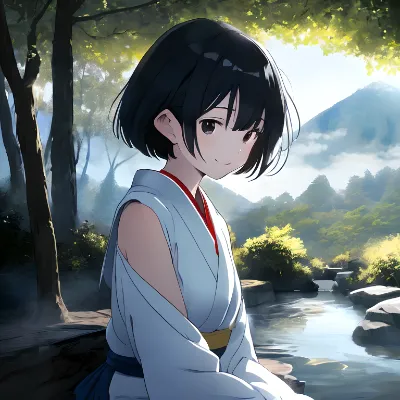 満月の夜空の下、雪の上にいる笑顔の狼少女のイラストです。