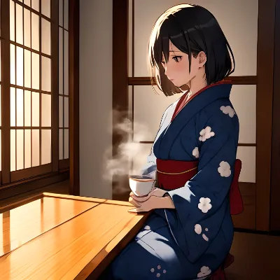 masterpiece, best quality, ultra-detailed, 8k, realistic lighting, soft shading, anime style, cinematic composition, depth of field, a beautiful 20-year-old Japanese college girl, Watanabe Aoi, short bob-cut black hair, black eyes, slender body, sitting gracefully at the edge of an outdoor hot spring, light steam rising around her (1.2), gentle sunlight filtering through trees (1.1), wearing a light towel around her shoulders, natural smile, relaxed expression, droplets on her hair, serene mountain background, reflection on water, delicate skin texture, soft warm color palette, tranquil atmosphere, lens flare, ambient mist, anime illustration, by ChromaFTv4