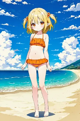 黒髪おさげ+メガネ+黒ビキニ+プリーツスカート