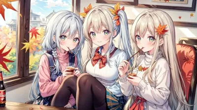 (masterpiece:1.1), (anime_style:1.1), (best_quality:1.1), (high_resolution:1.1), (stable_generation_with_consistent_quality:1.1), (vertical_portrait:1.2), 3girls, (long_silver_twin-tails:1.1, hair_gently_flowing_in_elevator_light:1.2, third_girl_with_wavy_silver_hair_and_floral_hair_accessory:1.1), (emerald_eyes:1.1, sparkling_with_blushing_excitement:1.0), wearing (autumn_clothing_with_sweaters_skirts_and_tights:1.1, cozy_and_modest_clothing_with_varied_colors_and_styles_for_flexibility_to_emphasize_autumn_charm:1.0, accentuating_large_breasts_in_a_natural_way:1.1), large_breasts (H_cup_or_more, naturally_prominent_with_no_hints_of_exposure:1.2), (anime_typical_high_school_girl_appearance_14-17_years_old_style:1.2, youthful_cute_anime_features_with_mature_chest:1.1, no_realistic_human:1.2), (standing_in_modern_glass_elevator_with_city_view:1.3, elevator_doors_half_open_showing_autumn_sky:1.2, one_girl_pressing_floor_button:1.1), (enjoying_a_heartwarming_elevator_doki_doki_comedy_scene_with_husband:1.1, surrounded_by_elevator_with_mirrors_buttons_city_lights_red_leaves_reflection_and_flexible_backgrounds:1.1), (gentle_and_warm_expression_with_playful_blushing_smile_in_various_poses:1.1, third_girl_with_sweet_smile_and_shy_eyes:1.1), (perfect_anatomy_no_extra_limbs:1.3), (ultra_detailed_anime_style_CG_illustration:1.1), (glossy_magazine_like_finish:1.1), (vibrant_shiny_colors_with_warm_autumn_tones:1.1), (ultra_detailed_fictional_beings:1.1), (young_pretty_faces:1.1), (balanced_proportions_with_natural_chest_emphasis:1.2), <lora:add_detail:0.7>