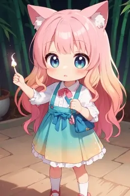 (best quality), (ultra-detailed:1.2), (illustration), (castle:1.2), (wide angle view:1.2), (long shot, wide shot:1.3), ( girl, rowing a boat on the lake of a castle, castle reflected in the calm water, wearing a straw hat, swans swimming around, serene sunset in the background :1.2), (castle:1.2), (wide angle view:1.2), (long shot, wide shot:1.3), (short girl:1.2) (loli:1.2) (chibi:1.2) (toddlercon:1.1) (toddler body:1.1) (loli face:1.2) (4yo:1.1), (beautiful detailed eyes:1.1), (highlight in eyes:1.2), (long wavy hair:1.3), (gradient hair:1.3), (((tareme))), (pink head hair:1.1), skyblue tip hair, multicolored hair , (pastel color hair:1.2), (colorful hair:1.2), (gradient hair:1.4), (((tareme))), ((pastel color)), (cat ears:1.1), (nekomimi:1.1), <lora:age_slider:0.5>