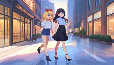 1girl,solo,blond hair,short hair,bob hair,blue eyes,(hair bow:1.4),(red bow:1.4),(large bow:1.3),gentle smile,joyful expression,walking,morning scene,(cosmos field:1.3),(pink cosmos:1.2),(white cosmos:1.2),walking through flowers,admiring flowers,looking at cosmos,outdoor,(morning light:1.2),soft sunlight,clear sky,peaceful atmosphere,autumn scenery,flower garden,side view,full body,casual autumn clothing,relaxed posture,arms swinging naturally,an extremely delicate and beautiful,beautiful detailed eyes,beautiful detailed flowers,anime style,warm lighting,gentle breeze,(masterpiece:1.3),(best quality:1.3),(very aesthetic:1.2),(absurdres:1.2),