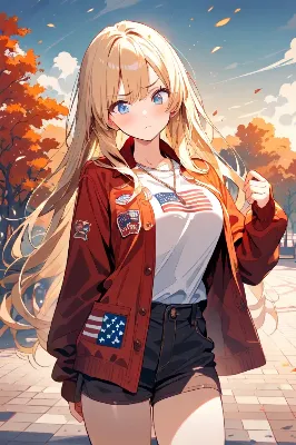 masterpiece,best quality,extremely detailed,1girl,child,9 years old,infant body type,flat chest,blonde hair,wavy hair,long hair,aqua eyes,thick eyebrows,forehead,skull_hair_ornament,grin,rocker costume,
