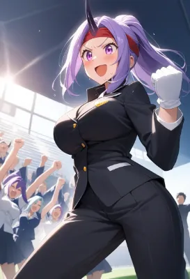 ukkripp,cheering team,long_sleeves,long gakuran,black shirt,(black slacks,long pants),illustration of them waving their fists and cheering,passionate cheering team,impressive composition,school playground,(white gloves),(white long headband),v-shaped eyebrows,