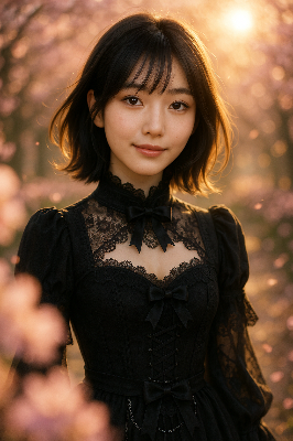 高層ビルの一室で、黒髪の少女が窓辺に佇む。耳に揺れる三日月のイヤリングが、淡い光を反射する。彼女は遠くの街並みを眺め、失われた恋の記憶を辿る。夜の風がレースのドレスを優しく揺らし、心に秘めた秘密が静かに息づく。もしかすると、この瞬間が新たな冒険の始まりなのかもしれない。読み手は彼女の瞳に映る物語を想像せずにはいられない。