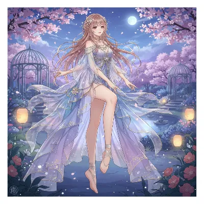 青みがかった部屋で、窓から差し込む柔らかな光に包まれながら、少女は床に座り込む。彼女の髪はピンクのグラデーションを帯び、ゆったりとした服が体を優しく覆う。外の世界を眺めつつ、心の中で小さな冒険を繰り広げているのかもしれない。失われた思い出や未来への憧れが、静かな部屋に満ちる。この瞬間、彼女の日常は幻想的な物語へと変わる。