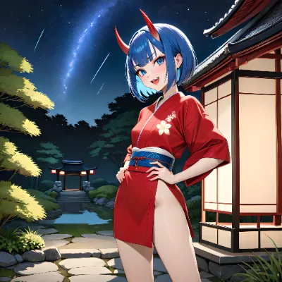 masterpiece, high quality, 4k, ultra-detailed, perfect anatomy, perfect finger, woman, 18yo, solo, face close up, laugh, happy, open mouth, looking at viewer, bob cut, blue hair, cat-like eyes, cat ears, fang:1.2, small breasts:1.2, slender body type, blouse, skirt, ankle socks, dress shoes, paw gloves, cat tail, all fours, from above, upper shot, sweating, day, Summer, festival, Japanese culture