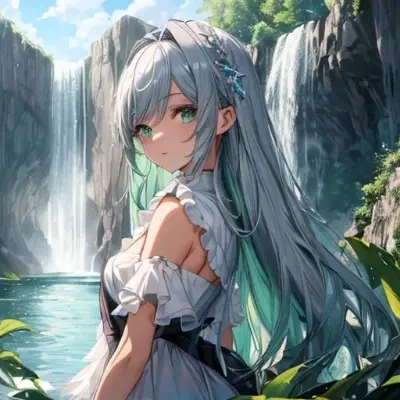 (Ultra detailed extremely:1.4), (best quality:1.4),(Ultra detailed extremely beautiful official art style),A pastel-colored image with a sense of transparency and lightness.,(rich splash wet effect),dynamic angle,dynamic pose,(Ultra detailed extremely detailed well written hair+face:1.4),(Ultra detailed extremely big eyes small mouth innocent lolita Young face girl:1.4)(,medium large breasts petite slender body),{gradation pony tail hair},{vivid emerald eyes},light silver hair,(best smile),(ultra Details etailed intricate very ( cute) friendly (kawaii) face),Ultra details embroidery shirt+Tight Skirt,ruddy healthy face,ruddy healthy skin,hairband, fountain <lora:kawaiiRealisticAsian_v03:1>