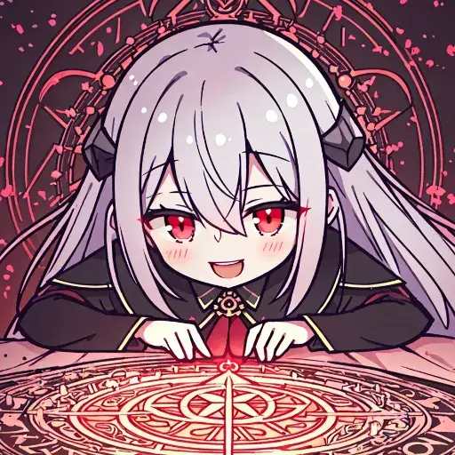 BREAK,(girl:1.2),(smile:1.0),(Very beautiful eyes, glowing red:1.2),face close-up,silver hair,mini skirt,