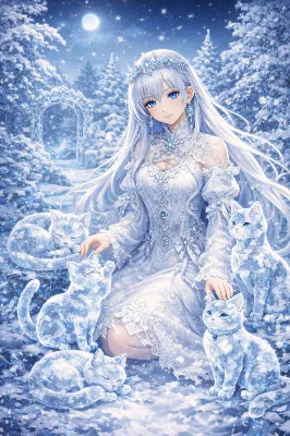 銀髪の少女は、静かな湖畔に座り、ガラスの箱に閉じ込めた小さな森を優しく見つめている。彼女は失われた自然の守護者として、星の光を浴びせながら、箱の中の木々が成長するのを待つ。夜空の銀河が映る水面に、少女の孤独な影が揺れる。この小さな森が目覚める時、どんな冒険が始まるのだろうか? 読み手は、少女の秘密に想いを馳せる。