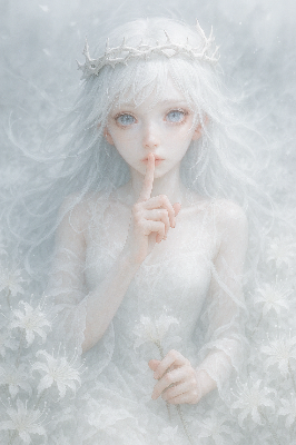 白く輝く無限の回廊で、浮遊するクリスタルの粒子が優しく舞う。遠くにぼんやりとした人影が佇み、静かな霧が辺りを包み込む。これは未来の夢の迷宮か、それとも記憶の残像か。主人公は光の線に導かれ、未知の扉へと歩みを進める。そこに待つのは新たな発見か、永遠の静寂か。読み手の心を幻想的な世界へ誘う一瞬の物語。