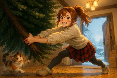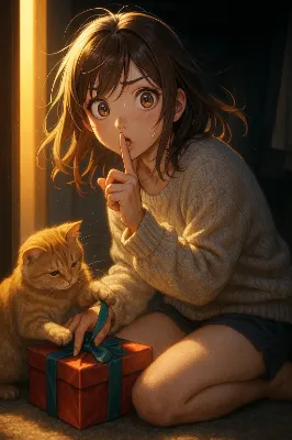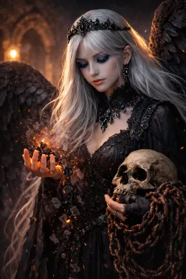 薄暗いアトリエの片隅で、鎖に繋がれた粘土の彫像が静かに佇む。その背後から現れた長い髪の女性の影が、輝く瞳で像を見つめる。彼女は彫刻師か、それとも魔女か? 像に命を吹き込もうとする瞬間、部屋に不気味な緊張が満ちる。やがて、鎖が微かに震え、忘れられた魂の物語が始まる。