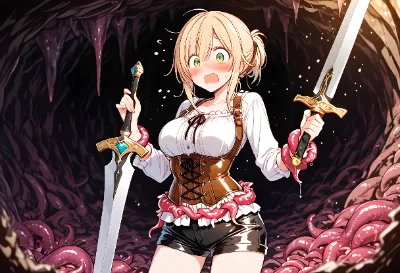 ヤバーイ出現の知らせを聞いて公園に駆け付けると、一見怪人には見えないけど物々しい気配を纏った人がいた。見た目はイケオジって感じの紳士で、英字新聞柄のスーツを着てる。多分、人に化けるタイプなんじゃないかな。 「あなた、ヤバーイの怪人でしょ!その邪悪な気配で丸わかりなんだから!」 私が叫んで指を突きつけると、その怪人はこっちを向いて口を開いた。 「その通り、ワタクシはヤバーイ四天王の一人バラバラヴァー様が造り上げた怪人にございます。名を『新聞紳士』と申しまして、新聞紙と紳士を合成した怪人ですな」 「しゃべりやがった!?」 ロジカルが驚いてスマホデバイスを取り落としかける。確かに、今までの怪人って基本的に鳴き声はあげてたけど意味のある言葉を操るのはいなかったのに。 「むぅ、今『紳士』を素材にしたような事を言っていたな。その人間の知能がかなり高かったのかも知れんぞ」 「人間を怪人にするのはハイヒールレスラーの時とかにもやってたけど、あの時は鳴き声しか喋ってなかったよね」 私たちが新聞紳士の特徴を見抜こうとしていると、するっと新聞紳士が増えた。最初から重なって立っていたのかっていうくらい自然に。 「増えちゃった!」 「ワタクシ、しん『ぶんしん』し、でございますから。分身も出来ますとも」 見る間に新聞紳士は増えて行って、私たちを取り囲んだ。私は包囲網を突破するために、ファイアボールを構える。 「おっと、お嬢さん。その炎の攻撃はワタクシに良く効きますが、攻撃しない事をお勧めしますよ」 「えっ、どうして?」 「見てお分かりかと思いますが、ワタクシのスーツは新聞紙。ゆえに簡単に破れたり燃えたりします。そうなると・・・もろ出しですぞ」 もろ出し・・・って、もしかして男の人のアレが!? 「ざけんな!ニチアサに出てきていい怪人じゃねーぞ!」 「そ、そうだよぉ!そんなえっちなの・・・だ、ダメだよ!」 「ふふふ、マジカヨといえど年頃の乙女。どうやらワタクシたちをもろ出しにするのは抵抗があるようですな」 私たちが攻撃できないでいると、じりじりと包囲網を狭めてくる。このままじゃ、一方的に攻撃を受けちゃう! 「なれば一撃で灰すら残さず屠るのみよ!カァッ!!!」 フィジカルが口から魔力砲を吐き出して、新聞紳士たちを跡形もなく消し飛ばした。でも、開いた包囲網を埋めるように次々と分身してくる。これじゃキリがないよ。 「お、おのれぇ・・・おのれぇ!」 「マズいぜ、こうなったら目を塞いで戦うか?」 「それじゃ敵がどれくらい残ってるか分かんなくなっちゃうよ!」 「苦戦しているようね」 打つ手がなくて困っていた私たちの隣に、クリティカルが降ってきた。 「クリティカル!来てくれたの?」 「ええ。とはいえ私も彼らを裸にしないで倒す方法なんて持ってないけどね。脱がしていいなら全員斬ってくるけど?」 「いやダメだろ!役に立たねぇな!」 やっぱりフィジカルがやってるみたいな超高火力攻撃で一瞬で消し去るしかないのかな。でも一人でも生き残ったら、そこからまたどんどん増えちゃうし。 「ヌゥ~ッ、火に弱いという事は分かっているのに燃やせぬとは。なんたるコシャク!」 火に弱い・・・そうだよね、そこは新聞紙の特徴受け継いでるんだ。新聞紙の弱点、他に何かあったかな・・・。 「・・・あっ!そうだ、これなら!」 私はすぐにタスカル君にテレパシーを飛ばした。 (タスカル君、今すぐ公園に来て!私が今から言う姿で!) (後でリリカルが一緒にお風呂入ってくれるなら考えてもいいカル) (もー!こんな時に何言ってるの!・・・お、お兄ちゃんの秘蔵の本読ませてあげるとかじゃダメ?) (う~ん、まぁいいカル。リリカルのお兄さん、確か巨乳セクシー美女派だったはずカル。結構期待できそうカル) 交渉成立。私は魔法のバリアを周囲に展開して、新聞紳士が近づけないようにした。時間を稼いでタスカル君が来れば、きっと勝てるはず! 「おいリリカル、何に気付いた?」 「タスカル君にお手伝いを頼んだんだよ。多分、すぐ来てくれるはず」 そして1分もしない内に、パワフルなエンジン音とタスカル君の声が聞こえて来た。新聞紳士たちがその声に動きを止める。 「毎度お騒がせ致しております、ちり紙交換車カル。ご家庭内の古新聞がございましたら 多少に関わらずお声かけ下さいカル。お声かけて頂ければこちらから参りますカル」 公園の遊歩道を走って来る軽トラックの姿が見えた。そう、私はタスカル君に「軽トラックに化けてセリフを言いながら走行してきて」とお願いしたの。 「ち、ちり紙交換車!なぜこんなところに!?」 「まずいですぞ、回収されてしまう!」 「逃げるのです、いや隠れるのです、いややっぱり逃げるのです!」 案の定、新聞の弱点そのままの新聞紳士は大騒ぎ。次々分身が消えて行く中、一人だけすごい速さで一目散に逃げて行く新聞紳士が。あれがきっと本体なんだ。 「私に任せて、仕留めてくるわ」 クリティカルが