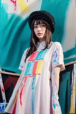 ,(Deconstructed blouse, wide-leg pants, platform shoes wear:1.4)