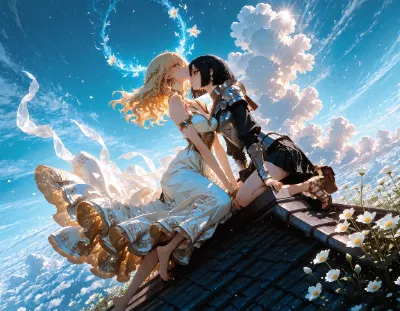2girls, masterpiece, best quality, ultra-detailed, cinematic lighting, dramatic atmosphere, surreal concept,