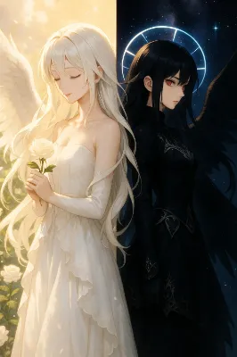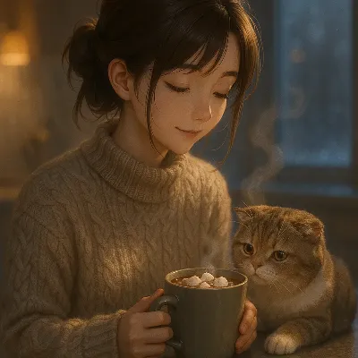 夜の森で迷った白い狐は、古い瓶の中に身を寄せた。瓶の中には小さな石灯籠が灯り、優しい光が雨粒を照らす。落ち葉が舞う中、狐は静かに座り、星空を眺めながら何かを待っているようだ。もしかすると、この瓶は魔法の扉で、狐を新しい冒険へと導くのかもしれない。雨音が奏でる調べに、狐の心は穏やかに揺れる。