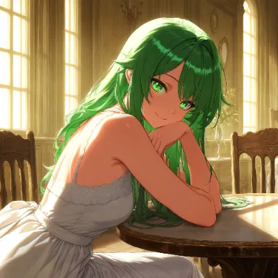 穏やかな春の花畑に座る金髪の少女。頭に花飾りを付け、青い服をまといながら、遠くを見つめる彼女の瞳には、冒険の予感が宿る。もしかすると、森の向こうからやってくる友達を待っているのかもしれない。花びらが舞う中、彼女の小さな日常が、大きな物語へとつながっていく。風に揺れる花々とともに、どんな秘密が明かされるのだろうか。