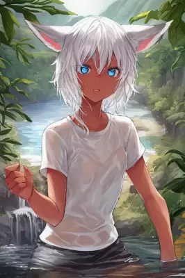 nihonga,{{1 girl}}, Miko clothing,full body, beside a huge tree,looking afar, short hair, wavy blonde hair,disheveled hair, bangs, ahoge, dark-skinned girl, fox ears, red eyes, long sleeve, small chest, autumn leaves, from the Torii, {portrit}, ground covered with red leaves, dynamical angle,
