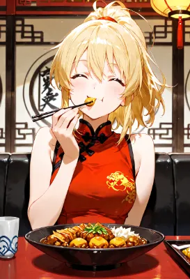 masterpiece, best quality, extremely detailed, anime,drinking chai,happy,girl,blonde ponytail , <lora:flat2:-0.55> <lora:hairdetailer:0.2>
