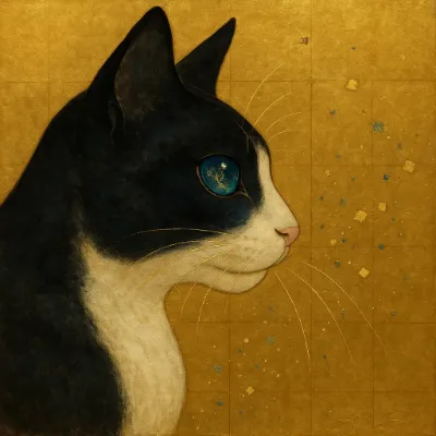 星々が輝く夜空の下、黄金の月を背に、黒髪の美女が静かに手を合わせる。彼女は古の巫女として、失われた恋人の魂を月へ託す儀式を行う。風に揺れる着物の袖が、切ない記憶を語りかけるように広がる。この瞬間、宇宙の神秘が彼女の心に降り注ぎ、新たな希望の光を灯す。読み手は、彼女の願いが叶うかどうかを想像せずにはいられない。