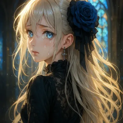 暖かな部屋の柔らかな光に包まれ、金髪の少女が頰を赤らめて微笑む。彼女は大切な誰かを待っているのか、それとも心に秘めた想いを胸に抱いているのか。ジャケットの袖を握りしめ、そっと息を潜めるその姿は、日常の小さな冒険の始まりを予感させる。外の世界から離れたこの空間で、彼女の物語が静かに紡がれていく。何が彼女をこんなに照れさせるのか、想像が膨らむ一枚。