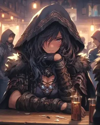 夜に淡く発光する色とりどりのクラゲが空中を漂う、緑豊かな森の小川のほとりを歩いている美しい女性。美しい顔立ちに、鮮やかな色彩の輝く瞳。緻密かつ繊細な装飾品を身に着けている。月が輝く夜に発光する小さなクラゲが漂う幻想的な森。詳細な描き込み。鮮やかな色彩。高画質。