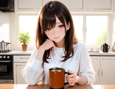 温かな光がテーブルを照らす中、蒸気立ち上る紅茶が優雅に置かれている。葉の形の飾りが浮かび、心地よい香りを想像させる。 チャイとは日本で言うとミルクティーです。 本場のインド・トルコでは紅茶にミルクを入れ大量の砂糖を入れて作ります またシナモンやショウガを入れることもあります。
