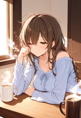 お題「チャイ」でゆるキャン△の四尾連湖キャンプ場へなでしこを送った際に水明荘にてホットチャイを頼んで一服する桜さんのシーンが真っ先に浮かんだので… モデル選定に迷走し(幼さが出ると大垣千明に…)ホットチャイが安定生成せず(氷入り出たり…)この辺で妥協。