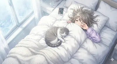 雪が静かに降り積もる夜の街角。学校帰りの少女は、コンビニで買ったパンを手に、凍える野良猫に出会う。しゃがみ込んで優しく差し出すその瞬間、二つの孤独な魂がつながる。寒い冬の風が吹く中、この小さな出会いが、少女の心に温かな光を灯す。猫の瞳に映る街の灯りと、少女の微笑みが、忘れられない冬の物語を紡ぎ出す。もしかすると、この出会いが新たな冒険の始まりかも?