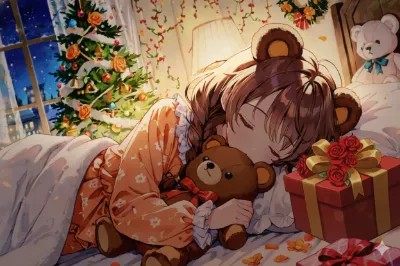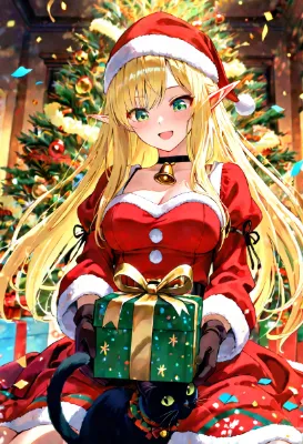 masterpiece, best quality, masterpiece, masterpiece, best quality, ultra detailed, woman, blonde, fox ears, cleavage, Relaxed smile, western-style large bathhouse, elegant European architecture, high ceiling, arched windows, classical stone walls, marble floor, large indoor hot bath with gently steaming water, beautiful Christmas tree beside the bath, decorated with lights and ornaments, warm golden illumination reflecting on the water surface, candles and soft indirect lighting, warm, calm and luxurious atmosphere, winter holiday mood, peaceful and relaxing spa environment, cinematic lighting, soft glow,