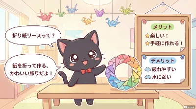 雪窓辺の折り紙少女の微笑み