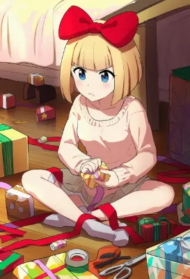 1girl,solo,(blond hair:1.2),short hair,bob hair,(hair bow:1.4),(red bow:1.4),blue eyes,beautiful detailed eyes,smiling,friendly expression,shopkeeper,medium breasts,(long sleeve shirt:1.2),(winter coat:1.3),warm winter clothing,scarf around neck,winter outfit,standing behind stall,(food stall vendor:1.3),hands on counter,leaning forward slightly,upper body visible,legs standing,outdoor winter scene,(street food stall:1.3),(chocolate mint ice cream display:1.4),(mint chocolate chip ice cream:1.4),multiple ice cream containers,(mint leaves:1.3),(fresh mint display:1.3),mint plants in pots,green mint leaves,ice cream in glass cases,colorful display,stall counter with products,winter festival atmosphere,(selling scene:1.2),merchant setting,cold weather background,winter street,snow on ground,other stalls in background,festive winter market,warm lighting from stall,breath visible in cold air,detailed background,cozy atmosphere despite cold,anime style,Japanese animation style,cell shading,vibrant colors,winter color palette,(masterpiece:1.3),(best quality:1.3),(very aesthetic:1.2),(absurdres:1.2),