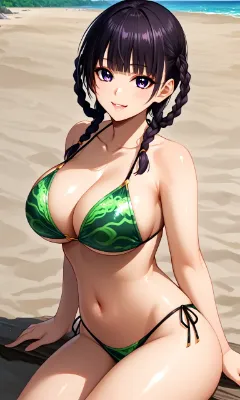 ultra detailed, top quality, masterpiece, aesthetic, high-res, absurdness, 16k, score_9, score_8_up, score_7_up, beautiful face, beautiful eyes, cute eyes, shiny hair, (4fingers:0.7), 1girl, voluptuous body, large breasts, doachristie, white hair, medium hair, outcurl hair, ash gray eyes, <lora:doachristie-pdxl-nvwls-v1:0.7>, white bikini, leather bikini, (snakeskin bikini), smile, sitting on wood, driftwood, beach, in resort area, add more details, <lora:Add_more_details_pony:0.4>