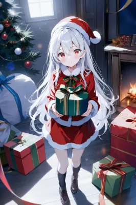 雪の降るクリスマスの夜、銀髪の少女がサンタクロースに扮して街の屋根を駆け巡る。大きな袋には子供たちの夢がいっぱい。街灯とツリーの光に照らされ、彼女は静かにプレゼントを届けていく。冷たい風が頰を撫でる中、どんな奇跡が待っているのか? 心温まる冬の物語が、今宵も始まる。