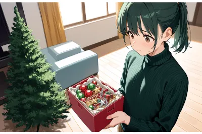 ハローヘイロー地球の皆様、YESラファエルNO天使、義眼の聖女『ラファエル』です。 今日はヒマリさんから発信をお願いされて、こうして皆様にお届けしています。何でもミリシラ様がスキー場に遊びに行っててクリスマスをボイコットしたとか、地球の方では『青銅のプレゼントコンテナを投下するゴーレム』や『火炎放射で街を焼き尽くす老婆三人組』が現れてクリスマスどころではなかったようで、ミニスカサンタが足りないと。 そこで今日の私は、ヒマリさんから渡された衣装に着替えています。これを着て、箱の中でお話すれば大丈夫らしいです。ただ、箱の中と言われましても少し箱が小さくて、棺の様に寝転ぶ事もできませんし中に座ると上半身が丸ごと外に出てしまいますので、こんな姿勢で失礼いたします。これなら何とか体のほとんどを箱の中に収められますから。 さてさて、肝心のお話の内容ですけど・・・これが少し困りものですね。私は異世界の民なので、『クリスマス』という風習に馴染みがありません。去年ヒマリさん提案で行ったクリスマス会は今年も実施して、子供たちにプレゼントを配ったりもしたのですが、クリスマスの宗教的・文化的な意味合いをちゃんと理解しているかと言われると少し厳しいところがあります。ですのでクリスマスそのものについてのお話は、地球の皆様にお聞かせするのはまるで「お猿さんに木登りを教える」事みたいに無意味かと存じますね。ですからヒマリさんに教わった『オーナメントの意味』をいくつかご紹介しましょう。 まず、このたくさんあるボール型の飾りですね。こちらは『家庭円満』や『地球の平和』を象徴するようです。球体というのはどの角度から見ても円形のシルエットであり、調和を意味するためにそうしたシンボルとして使われるそうです。 天使の飾りも、家族や周囲の人々の『平和や保護』を願って飾られるものです。たまに天使そのものではなく翼だけという事もあるそうですが、意味は同じ。こちらの世界では天使はたくさんの種族の一つですが、地球では神に近しい守護者的存在として扱われているのでしょう。 赤と白の縞々の杖は・・・私には色が分からないのですが、多分形状的にこれですね。これはキャンディケインと呼ばれ、人々を『正しい道へ導く』象徴だとか。私は信力で周囲の様子が分かりますが、普通は目が見えないとなると杖などで周囲を探る必要がありますよね。そうした側面があって、杖は正しい道を教えてくれる存在として地球に馴染んでいるのでしょう。ちなみに色については、赤色はキリストさんの『血』で白色はキリストさんの『純粋な魂』としての意味があるそうですよ。 星のシンボルも、キリストさんの誕生を導いた星にちなんで飾られているそうで、ツリーの頂には欠かせないオーナメントです。宗教的意味合いの薄かったヒマリさんの故郷でも必ずと言っていいほどツリーの一番上は星だったそうなので、私たち聖職者にとっての『神』のようなものなのかも知れませんね。 あとはリボンやガーランド・・・ツリーに巻き付けるこれは『慈愛の抱擁』や『途絶えない永遠の絆』といった意味で飾られるのだというお話でした。こうして見直すと、ツリーを飾るオーナメントには『幸福』を願う意味がたくさんあるのですね。愛を感じます。 「しっ、失礼します!ハァッ、ハァッ」 あら、ヒマリさん?どうしましたか、そんなに息を切らせて・・・。 「ハッ、ハッ・・・フゥーッ・・・ラファエル様、本当にすみません!私確かに『箱に入ってお話してください』とは言いました!でもそれ、『全身を箱の領域内に収めてくれ』って意味じゃないです!上半身は出してていいんですよ!なんかこう、『プレゼント箱からひょこっと顔を出してる』的なイメージでお喋りしてくれたら可愛いかなって思って・・・」 あらあら・・・すみません、私が妙な解釈をしたせいでヒマリさんに走らせてしまったようですね。 「いや私の説明がマズかった・・・てかそれより、早く姿勢戻して下さい!見えちゃってますから!」 見え・・・?あっ、下着ですか?そう言えば法衣よりもスカートが短いですからね、うっかりしました。お見苦しいものを地球の皆様にお見せしてしまいましたね。 「手で押さえても隠せてないですって!ああもう、とりあえず発信終わりましょう!」 そ、そうですね。それでは失礼いたします、さよなラファエル~。