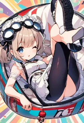 Today's the anniversary of Japan's First Flight! Wait, we had planes the day before yesterday too, but apparently today marks the day Japanese people first took to the skies at Yoyogi Drill Ground! So for today's Shimiko outfit, I imagined a pilot from that era—a retro leather jacket-style top, big goggles on my head! A huge propeller pattern is embroidered on my back, and my pose is all “Takeoff!” with my finger pointing diagonally upward! The background is like an old runway with lots of vintage airplane parts scattered around. How's that? Pretty cool, huh? Hehe!