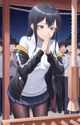 A beach at dusk, the silhouette of a girl standing against the backdrop of the sun setting over the horizon, her long hair fluttering in the sea breeze, one hand on her chest as she gazes into the distance, the other hand hanging naturally at her side, her body angled to the side, her face in full profile, her full body in view all the way down to her feet, composition looking up from a low angle, the silhouette gradating from deep navy blue to black, the background a sky gradating from fiery orange to red, pink and purple, the horizon shining gold, several small birds flying in the sky, a girl's footprints leading to the sand, a tranquil atmosphere where you can almost hear the gentle sound of the waves, strong contrast of light and shadow, cinematic composition, digital painting style, delicate color blending, poetic and sentimental mood, nostalgic atmosphere.