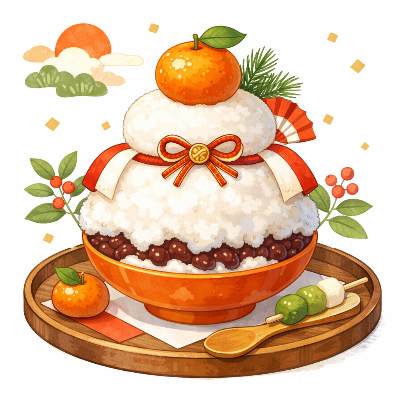 古い和室で、青い髪の少女が赤い着物をまとい、微笑みを浮かべる。手に持つのは、黒い皿に盛られた白いお餅と鮮やかなみかん。お正月の穏やかな午後、家族の集まりを待つ彼女の心には、幼い頃の思い出がよみがえる。障子の柔らかな光が部屋を照らし、遠くから聞こえる笑い声が、彼女の冒険の始まりを予感させる。どんな楽しい出来事が待っているのだろうか?