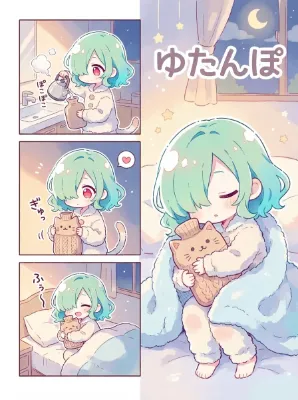 新年の訪れとともに、頭に鏡餅を乗せた不思議な少女が現れた。緑の着物をまとい、手に小さな鏡餅を抱えて、門松の間をくぐり抜ける。彼女は古い伝説の守り人か、それともただの遊び心あふれる精霊か? 雪の降る夜、家族の笑顔を守るために小さな冒険を始める。鏡餅の甘い香りが、幸せな一年を約束するかのように。 ※青年