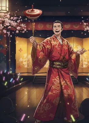 雪が静かに降り積もる神社の片隅で、巫女がお神籤を手に、弟妹たちに優しく語りかける。両親は温かな笑顔で見守り、テーブルにはみかんと大福が並ぶ。お正月のしめ飾りが揺れる中、家族の絆が深まるひと時。ここでは、冬の冒険譚が始まり、子供たちの目が輝く。外の雪景色が、未来への希望を象徴するように広がる。