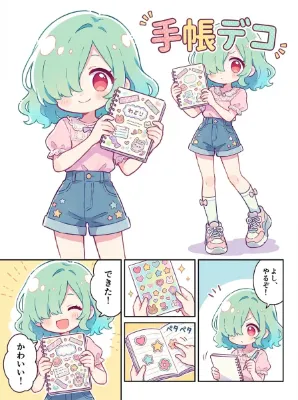 夏祭りの賑わいの中で、緑髪の少女が不思議な鯉に乗って飛び跳ねる。彼女は古い祭りの伝説に導かれ、水しぶきをあげながら冒険の旅に出る。着物の裾をなびかせ、笑顔で風を切る姿は、誰もが憧れる自由の象徴。鯉の背中から見える世界は、日常を越えた魔法のような瞬間。少女の心に秘めた願いが、夜空に花火のように輝く物語。 ※少年 一応、書き初めのつもりなんだ……!!!!!